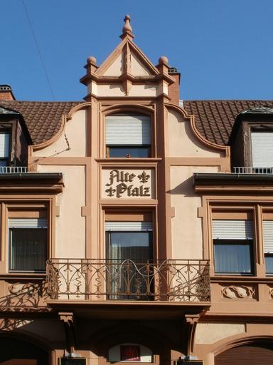 Keywords: gable pediment schwetzingen balcony architecture building old style house exterior roof facade historic traditional construction structure