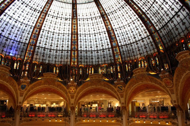 Keywords: gallery lafayette paris purchasing shopping department store dome glass sun human beauty mood atmospheric