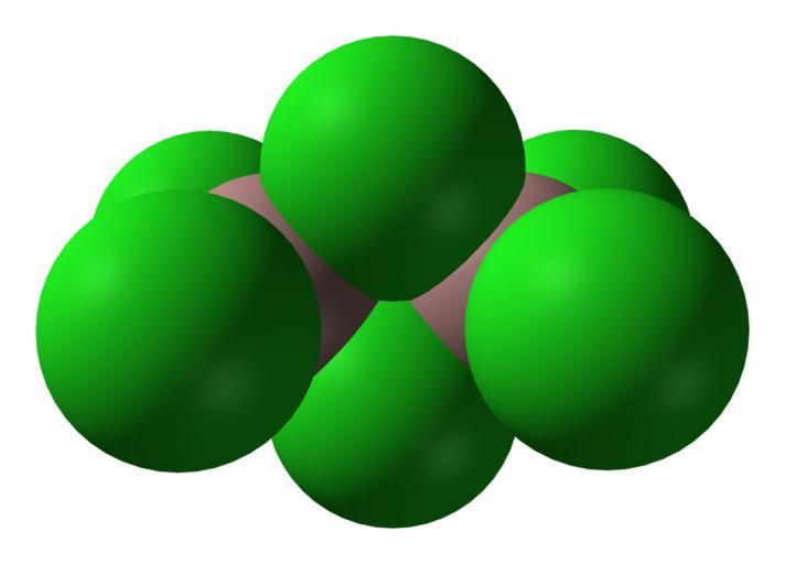 | Keywords: Gallium-trichloride-from-xtal-2004-3D-SF.png Space-filling model of the dimer of gallium trichloride GaCl<sub>3</sub> i e the Ga<sub>2</sub>Cl<sub>6</sub> molecule from the crystal structure X-ray crystallographic data from http //dx doi org/10 1524/zkri 219 2 88 26320 Z Krist 2004 219 88-92 Own 2009-05-25 Ben Mills Benjah-bmm27 Images by Ben Mills Gallium trichloride Dimers | ||||