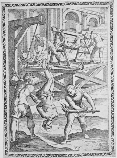 | Keywords: Gallonio Tortures 1591 p19.jpg Woodcut by Tempesta showing a torture/execution scene of martyrs from Gallonio's Tortures and Torments of the Christian Martyrs «Trattato degli instrumenti di martiro e delle varie maniere di martoriare usate da' gentili contro christiani descritti et intagliate in rame; opera di Antonio Gallonio» first publication Rome 1591 / scans from a 1904 reprint woodcut by Antonio Tempesta Reproduction of a painting that is in the public domain because of its age PD-old-100 Trattato degli instrumenti di martiro |