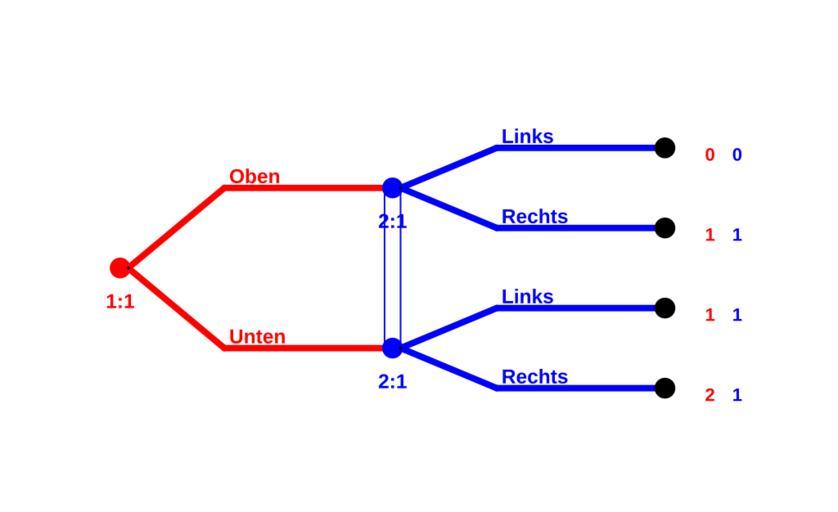 Keywords: Gametheory Example Extensive Game.svg de Einfaches Beispiel eines nicht sequentiellen Spieles dargestellt in Extensivform own mit Hilfe von http //www gambit-project org/doc/index html Gambit STHD13 STHD12 2011-12-30 Game theory