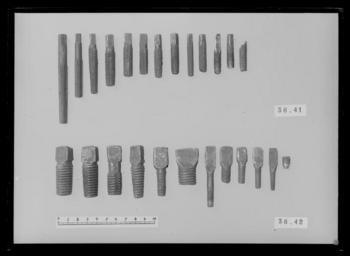 | Keywords: Gängtappar, 13 stycken - Livrustkammaren - 78063.tif Ur Johan Rings bössmakarverkstad 13 stycken gängtappar av stål i olika storlekar alla med fyrsidigt huvud som övergår i en gängad cylinder med fyra längsgående skåror Allt förvaras i en brun pappask med etikett som vittnar om tidigare innehåll av fotografiska glasplåtar original caption ca 1900 size mm 7 minsta size mm 11 största g 255 m ask LRK Johan Ring bössmed place of origin original filename LN_B07309_B10189 54315 inventory number LRK 18366 78063 CC0 Gängtappar 13 stycken - Livrustkammaren - 78063-negative tif Threading tools Media contributed by LSH dim-with multiple size templates Media contributed by LSH 2013-10 |