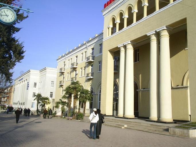 Keywords: Ganja downtown.jpg Downtown of Ganja Azerbaijan Picture taken by me in summer 2006 2003-08-30 own assumed Azeri Buildings in Ganja Clocks in Ganja