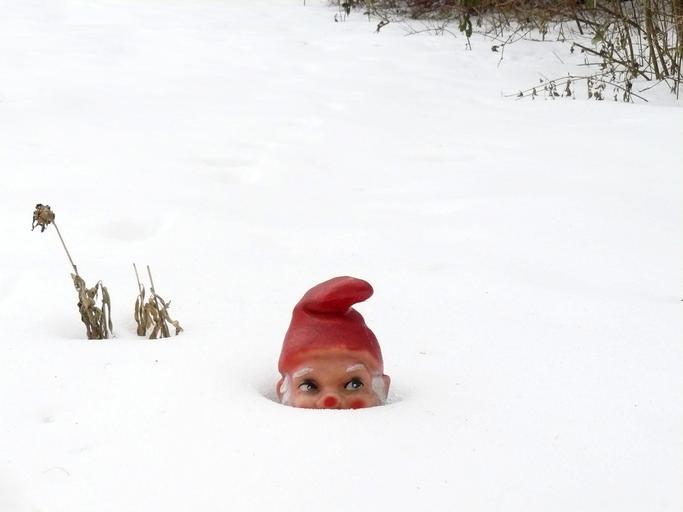 Keywords: garden gnome winter snow dwarf white cold hidden wintry snowy snow magic