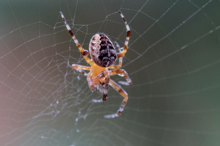 Keywords: garden spider araneus diadematus spider cobweb spider macro close animal spider webs floating safety net network insect hairy araneus arachnid drip drop of water
