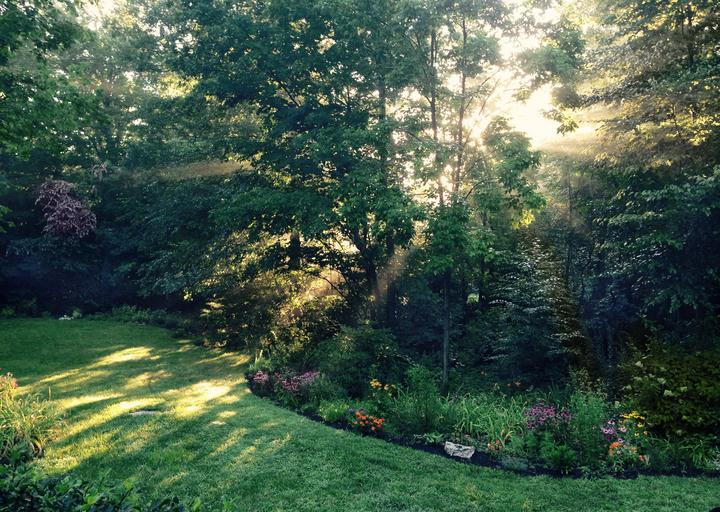 Keywords: garden sunlight dawn nature green summer light tree landscape outdoor morning connecticut