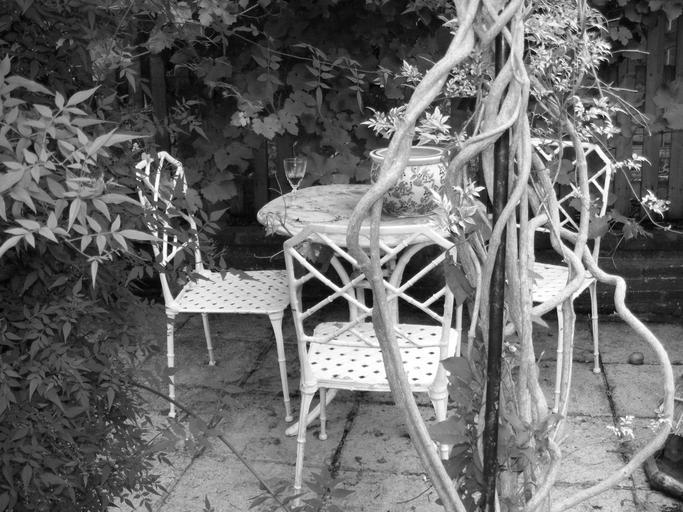 Keywords: garden table chairs gardening nature outdoor rustic outdoors