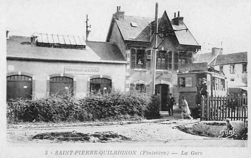| Keywords: Gare de Saint-Pierre-Quilbignon.jpg fr La gare de Saint-Pierre-Quilbignon sur le tramway de Brest au Conquet Finistère France Collection personnelle Collection personnelle 1910 PD-old Chemins de fer départementaux du Finistère Ancien tramway de Brest |