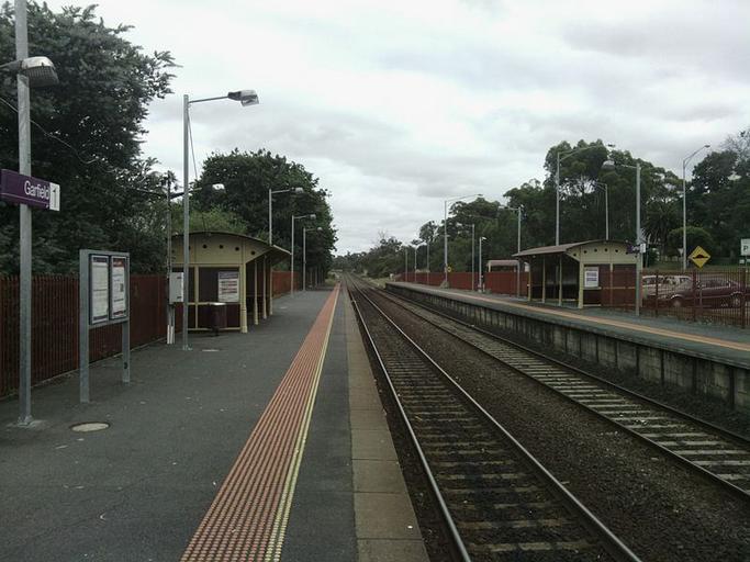 Keywords: 38 05S 145 40E Garfield railway station is located on the Orbost line in Victoria, Australia. It serves the town of Garfield. Opened 17 December 1884. attribution: Brad F 89