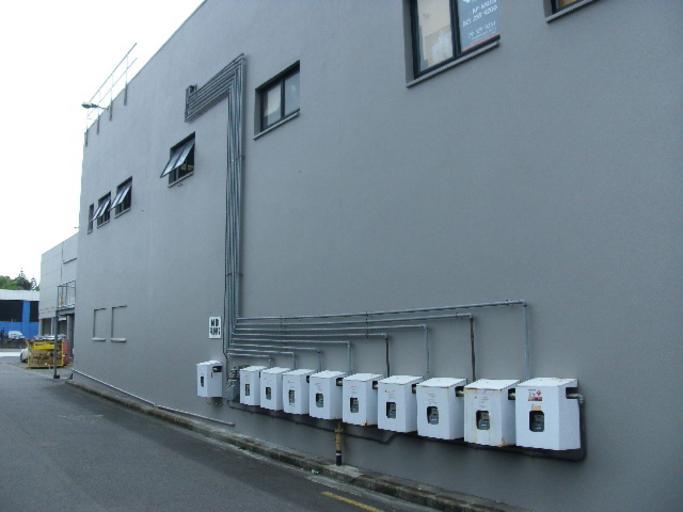 Keywords: Gas meters covered.jpg 11 gas meters outside 10 of them covered<br><small>In Manukau Cavendish St own 2012-12-04 Sarang Gas meters