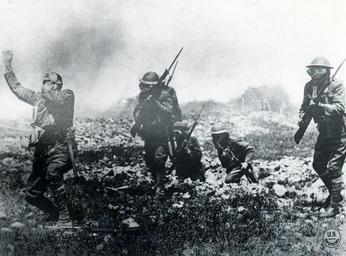 | Keywords: outdoor NRL 15502: American Expedition Forces. Original caption, “Danger from gas attacks was impressed on our men by every means to enforce obedience to the Army orders concerning the carrying and wearing of gas masks. This exhibition was staged for the benefit of soldiers by Major Everts Tracy, C.E. In 1918, from 20 to 30 percent of all our battle casualties were due to gas.” Photograph from 1918. NHHC Photograph Collection, NR&L 15502. NRL 15502: American Expedition Forces. Original caption, “Danger from gas attacks was impressed on our men by every means to enforce obedience to the Army orders concerning the carrying and wearing of gas masks. This exhibition was staged for the benefit of soldiers by Major Everts Tracy, C.E. In 1918, from 20 to 30 percent of all our battle casualties were due to gas.” Photograph from 1918. NHHC Photograph Collection, NR&L 15502. |