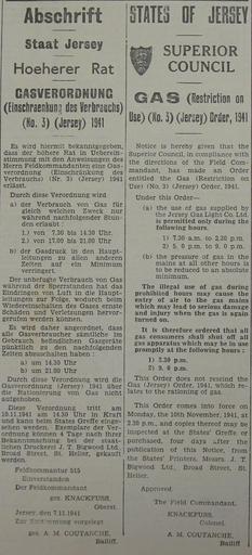 | Keywords: Gas order 1941 Jersey.jpg 1941 Occupation of Jersey PD-old PD-1996 own photo of old document 2013-04-03 12 20 19 Man vyi 1941 in Jersey German military orders in Jersey Alexander Coutanche Public services of Jersey Rationing in World War II Gas lighting |
