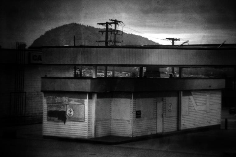 Keywords: blackandwhite black white bw monochrome gasstation abandon decay westbank okanagan bc britishcolumbia canada holgalens texture contrasts