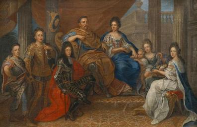 Keywords: Gascar John III Sobieski with his family.jpg Artwork Creator Henri Gascar ca 1693 oil canvas cm 73 5 108 5 Institution Wilanów Palace Museum accession number Wil 1123 object history credit line Muzeum Pałac w Wilanowie 2005 Kolekcja wilanowska ISBN 83-91512-61-4 See below PD-old-100 DEFAULTSORT 1693 circa; John III Sobieski with his family Paintings by Henri Gascar in the Wilanów Palace Sobieski family Baroque paintings of families Group portraits with 8 persons Princess Teresa Kunegunda Sobieska Konstanty Władysław Sobieski Aleksander Benedykt Sobieski Maria Kazimiera Sobieska Jakub Ludwik Sobieski John III of Poland Hedwig Elisabeth of the Palatinate Family portraits of Poland Royal families in art |