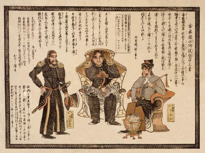 Keywords: Gasshukoku suishi teitoku kōjōgaki (Oral statement by the American Navy admiral).png Assessments c 2009 1 1 Gasshukoku suishi teitoku kōjōgaki Oral statement by the American Navy admiral 1 1 24 Gasshukoku suishi teitoku kōjōgaki Oral statement by the American Navy admiral A Japanese print showing three men believed to be Commander Anan age 54; Perry age 49; and Captain Henry Adams age 59 who opened up Japan to the west The text being read may be President Fillmore's letter to Emperor of Japan This is a somewhat extensive restoration meant to keep focus on the artwork instead of the damage See also File Gasshukoku suishi teitoku kōjōgaki Oral statement by the American Navy admiral minimal restoration png Gasshukoku suishi teitoku kōjōgaki Déclaration orale par l'amiral de la marine américaine Estampe japonaise montrant trois hommes considérés comme étant les commandants Anan 54 ans ; Perry 49 ans ; et le capitaine Henry Adams 59 ans qui ont forcé le Japon à s'ouvrir à l'ouest Le texte lu est probablement la lettre du président Fillmore à l'empereur du Japon La restauration de cette estamps est assez importante permettant de se concentrer sur l'art plus que sur les dégâts subits par l'œuvre A comparer avec cette version à restauration minimale Vertrag von Kanagawa Commodore Matthew Perry Mitte und andere hochrangige US-Seeleute Japanischer Farbholzschnitt Xilografía japonesa con Perry al centro y otros altos oficiales de la marina de EE UU Amerikako Armadako almirantearen ahozko adierazpena 1854 ingurukoa Ezkerretik eskuinera Anan komandantea Perry komodoroa eta Henry Adams kapitaina Japonia Mendebaldeari ateak irekitzera behartu zuen ekitaldian חיתוך עץ יפני ש אנשי הצי האמריקאיי ופרי במרכז cph 3g10708 Library of Congress ca 1854 author The Library of Congress says No known restrictions on publication File Gasshukoku suishi teitoku kōjōgaki Oral statement by the American Navy admiral minimal restoration png - The most accurate version to how it looks now - scanning errors corrected using a colourbox and the masking tape stuck to it edited out but none of the cleanup from this version File Gasshukoku suishi teitoku kōjōgaki Oral statement by the American Navy admiral unrestored png - Completely unrestored Should never be used anywhere as the colours as shown in the colour box the LOC included in the scan are obviously wrong Levels adjusted using LoC colourbox dirt and stains cloned out or selectively adjusted and cropped from LoC version PD-100 PD-Japan Ukiyo-e of historical figures and folk tales Matthew Perry naval officer 31 March Documents of Japan Featured pictures of Japan Perry Expedition 1853 Perry Expedition in art Woodblock prints of the Edo period Captain Henry Adams Yokohama-e Kurihama Yokosuka History of Yokosuka Featured pictures from the Library of Congress |