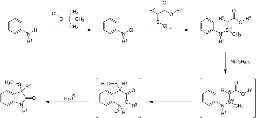 Keywords: Gassman Oxindol-Synthese.svg de Oxindol-Synthese nach Gassman 2013-09-14 18 16 09 own Charrow cc-zero Uploaded with UploadWizard Chemical reactions