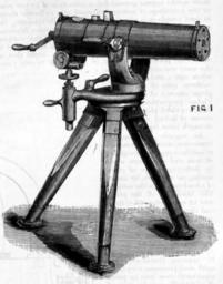 | Keywords: Gatling Gun (5 barrels) - The Engineer 1881-01-21.png  en In January 1881 the Royal Navy conducted a series of tests with seven different marks of machine guns This is the 5-barrel Gatling gun The tests were described in the periodical The Engineer January 21 1881 on page 42-44 along with a number of illustrations The Engineer 1881-01-21 page 42 http //www gracesguide co uk/images/4/4f/Er18810121 pdf Link to source at gracesguide co uk creator Unknown 1881 The Engineer magazine 1881-01-21 Gatling guns PD-old-70-1923 |