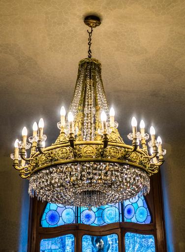 Keywords: gaudi house chandelier barcelona spain ceiling ornate landmark famous tourism