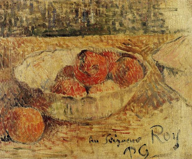 | Keywords: Gauguin 1888 Fruits dans une coupe.jpg Artwork Creator Paul Gauguin Fruits dans une coupe Fruites en un bol Fruit in a Bowl between 1886 1889 oil on canvas cm 33 45 private collection object history exhibition history Au Seigneur Roy PG dedication / signature lower right fr https //www pubhist com/w25044 PubHist Gauguin catalogues 381bis 215 207 PD-old-100-1923 Paintings by Paul Gauguin in private collections 1886 1880s paintings by Paul Gauguin 1886 1886 paintings Still life paintings by Paul Gauguin 1886 |