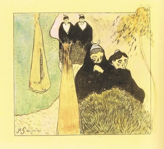| Keywords: Gauguin - Suite Volpini K09Aa.jpg Artwork Creator Paul Gauguin Suite Volpini Les Vieilles Filles à Arles Suite Volpini Velles fadrines a Arle 1889 Zincografia estampada en negre sobre paper vitel·la groc safrà i acolorida a mà Zincograph printed in black on saffron yellow wove paper with hand-colouring in watercolour Zincographie en noir sur papier vélin jaune zafran cm 19 1 21 6 private collection accession number Kornfeld 9Aa / Guérin 11 object history credit line Scanned from Paul Gauguin Paris 1889 ISBN 978-1-935-294-00-9 <gallery> File Gauguin - Suite Volpini K09Ab portfolio jpg Kornfeld 9Ab File Paul Gauguin 002 jpg oil on canvas </gallery> PD-old-100 Suite Volpini |