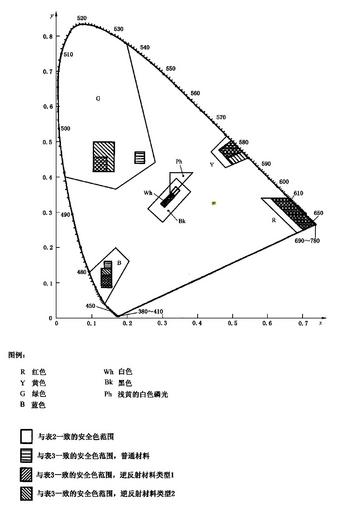 Keywords: GB 2893-2008 Pic 1.jpg zh 安全色和对比色的色品区域 GB 2893-2008 Safety colour AQSIQ 2008 PD-PRC-exempt Guobiao standards