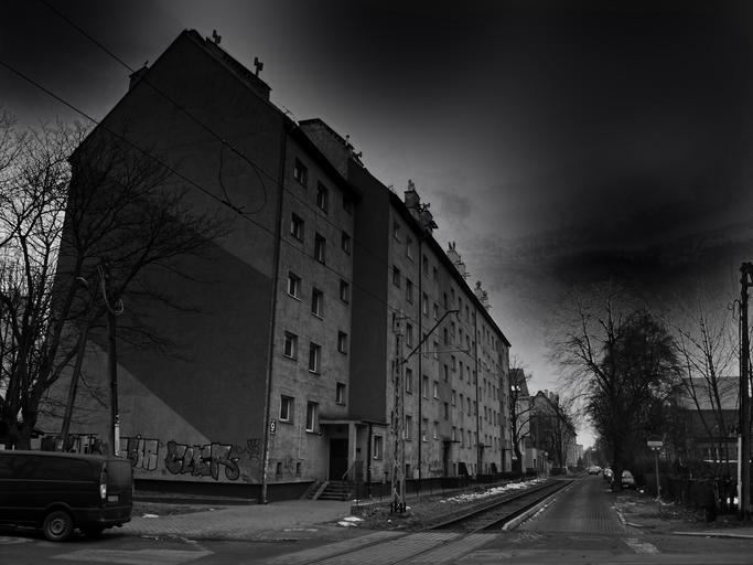 Keywords: gdansk polands buildings street architecture city cities urban black and white sky clouds outside