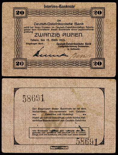 MAKE A MEME View Large Image ...Deutsch Ostafrikanische Bank-20 Rupien (1915).jpg German East Africa Deutsch-Ostafrikanische Bank 20 Rupien 1915 Part of an emergency issue of note during World War I 2015-01-27 12 42 39 Image by Godot13 Deutsch-Ostafrikanische Bank printed ...