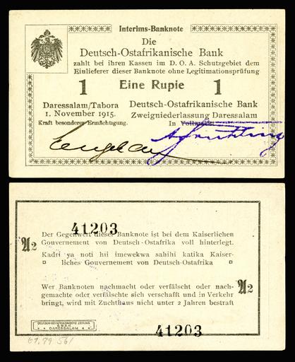 MAKE A MEME View Large Image ...Deutsch Ostafrikanische Bank-1 Rupie (1915).jpg German East Africa Deutsch-Ostafrikanische Bank One Rupie 1915 Part of an emergency issue of note during World War I 2015-01-27 12 28 53 Image by Godot13 Deutsch-Ostafrikanische Bank printed ...