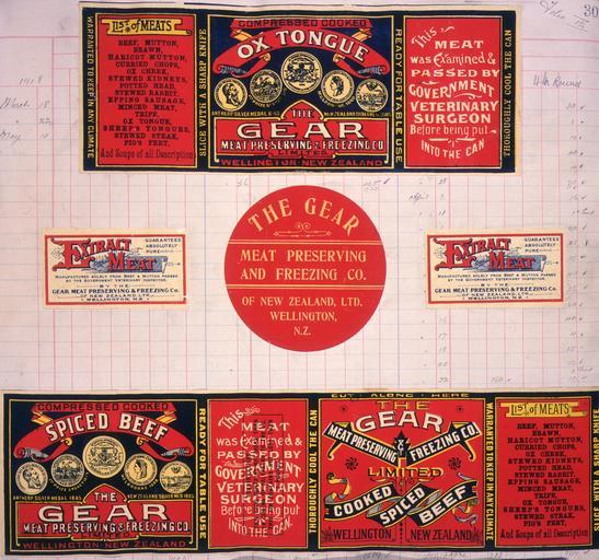 Keywords: text writing Each label is an arrangement of text and medals. None of the labels has an imprint naming the lithographer. Quantity: 6 colour art print(s) on labels.. Physical Description: Chromolithographs, on labels: 93 x 246 mm; 45 x 80 mm (2 copies); 93 mm diameter; and, 93 x 341 mm. Provenance: Deposited by Gear Meat Company in 1981. Gear Meat Company :[Five labels for Ox tongue; Extract of meat; The Gear Meat Company; and; Compressed cooked spiced beef]. Gear Meat Preserving & Freezing Company of New Zealand, Wellington New Zealand. [1890-1920].. Gear Meat Company :Scrapbook of labels. 1890s-1920s].. Ref: Eph-F-MEAT-Gear-030. Alexander Turnbull Library, Wellington, New Zealand. natlib.govt.nz/records/23131032 Each label is an arrangement of text and medals. None of the labels has an imprint naming the lithographer. Quantity: 6 colour art print(s) on labels.. Physical Description: Chromolithographs, on labels: 93 x 246 mm; 45 x 80 mm (2 copies); 93 mm diameter; and, 93 x 341 mm. Provenance: Deposited by Gear Meat Company in 1981. Gear Meat Company :[Five labels for Ox tongue; Extract of meat; The Gear Meat Company; and; Compressed cooked spiced beef]. Gear Meat Preserving & Freezing Company of New Zealand, Wellington New Zealand. [1890-1920].. Gear Meat Company :Scrapbook of labels. 1890s-1920s].. Ref: Eph-F-MEAT-Gear-030. Alexander Turnbull Library, Wellington, New Zealand. natlib.govt.nz/records/23131032 |