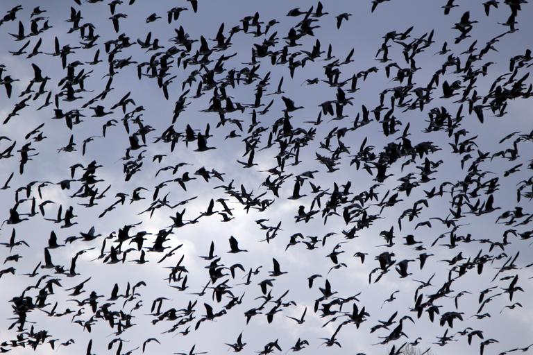 Keywords: geese flock of birds bird birds swarm migratory birds goose water bird wild goose