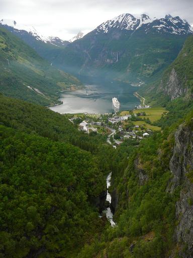Keywords: geirangerfjord landscape geiranger norway fjord scandinavia ship travel nature cruise holiday sea mountains sky green