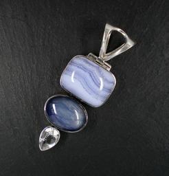 Keywords: gems jewellery trailers silver jewelry chalcedony bluish white shimmer silver rock crystal transparent ground violet blue light blue diagonal slate