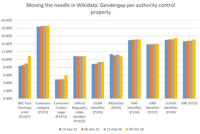 | Keywords: Gendergap report 29oct2016.png Graph of Female data about the various authority control indexes I have been tracking in my Wikidata userspace d User Jane023/Gendergap report Wikidata query 2016-11-29 Jane023 <span class signature-talk ></span> 14 39 29 November 2016 UTC Individual slides by Jane Darnell Cc-zero |
