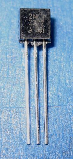 Keywords: Generic 2N2222A.jpeg en Front view of a generic 2N2222A transistor in a TO-92 package 2014-03-15 21 56 00 own MarkMossGH cc-zero Uploaded with UploadWizard 2N2222