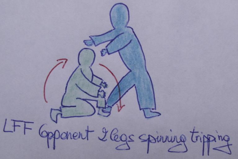 | Keywords: Generic fighting style TrippingTechnique 3.JPG en A schematic showing a tripping fighting technique The technique is generic meaning that it is used in a variety of fighting styles The schematic was based on an image in the book Aikido and the dynamic sphere by Adele Westbrook Oscar Ratti own KVDP 2009-07-25 Martial arts technique |