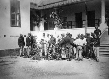 Keywords: Genre painting, First World War, soldier, men, uniform, yard, porch, stairs Fortepan 14301.jpg Check categories 2016 June 14 Tags genre painting First World War soldier men uniform yard porch stairs http //www fortepan hu/_photo/download/fortepan_20600 jpg 1917 Fortepan 14301 http //www fortepan hu/_photo/download/fortepan_20600 jpg http //www fortepan hu/ lang en img 14301 Unknown The release at fortepan hu is CC-BY-SA-3 0 As the photographer is unknown or pseudonymous and the photograph is Age 1917 01 01 years old it is considered public domain both in the country of publication Hungary and the USA where Wikimedia Commons is hosted See Fortepan HU for more information on related uploads PD-anon-70-EU PD-1923 DEFAULTSORT Fortepan 014301 1917 photographs Images uploaded by Fæ