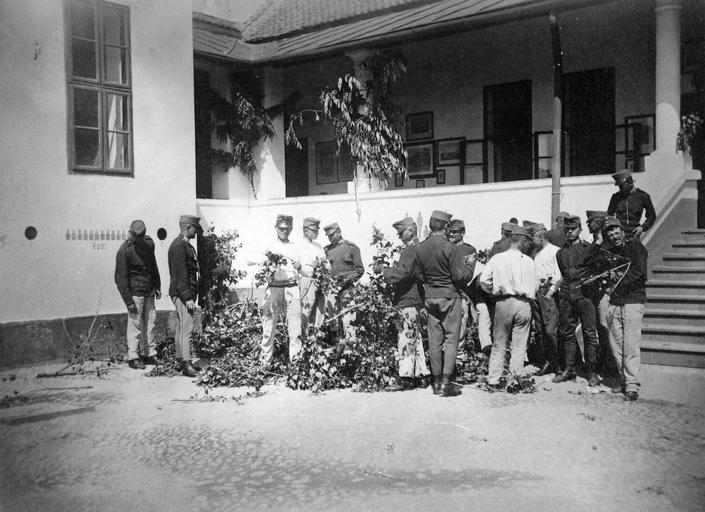 View Original:Genre painting, First World War, soldier, men, uniform, yard, porch, stairs Fortepan 14301.jpg (3933x2857)