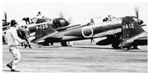 Keywords: Genzan Zero.jpg en A6M fighters of the Imperial Japanese Navy's Genzan Air Group at Genzan now called Wonsan Korea in 1940 or 1941 These are Reisen 21s constructed by the Nakajima company http //www j-aircraft org/smf/index php topic 3137 0 LRA Shigeru Nohara 1940-1941 PD-Japan-oldphoto Genzan Air Group Mitsubishi A6M2b |