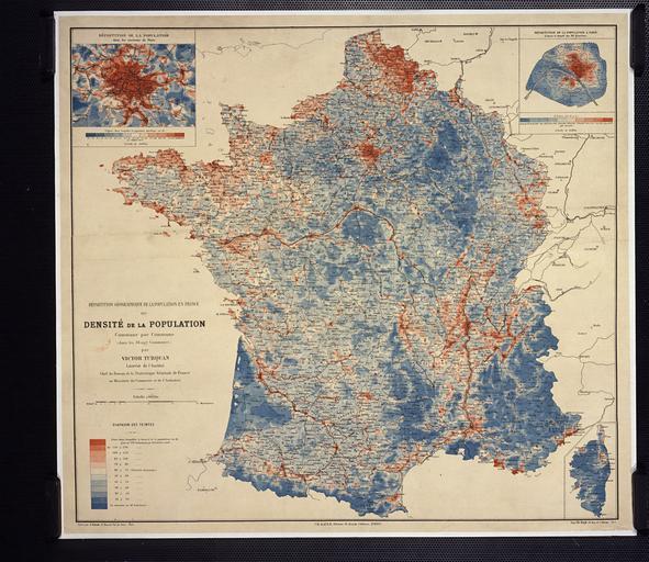 | Keywords: Geographical Distribution of the Population in France, or Population Density by Commune WDL3027.png Artwork ru Ту куан Викто 1857-19 fr Turquan Victor 1857-19 en Turquan Victor 1857-19 zh Turquan Victor 1857-19 pt Turquan Victor 1857-19 ar توركان فيكتور 1857-19 es Turquan Víctor nacido en 1857 y fallecido en el siglo XX ru Геог афическое асп еделение населения Ф анции или Плотность населения Коммуны fr Répartition géographique de la population en France ou densité de population par commune en Geographical Distribution of the Population in France or Population Density by Commune zh 法国人口的 理分布,或社区的人口密度 pt Distribuição Geográfica da População da França ou Densidade Populacional por Comuna ar التوزيع الجغرافي للسكان في فرنسا، أو الكثافة السكانية بحسب المحلية ru Викто Ту куан 1857-19 возглавлял Ф анцузское статистическое бю о с 1887 по 1896 год Он был авто ом многочисленных абот посвященных экономической и демог афической статистике в кото ые были включены ка ты с г адуи ованной ок аской и изолиниями линиями соединяющими точки с одинаковыми значениями По мнению Ту куана изучение асп еделения населения на те ито ии ст аны относится как к области геог афии так и к области статистики В эпоху когда цвет едко использовался даже п и составлении статистических диаг амм Ту куан составил эту ка ту асп еделения населения Ф анции используя изоплеты линии ок ужающие зоны с аналогичными отличительными особенностями и оттенки цветов для изоб ажения азличных егионов Благода я эстетике и качеству аботы Ту куана его ка ты значительно отличались от абот д угих статистиков того в емени; они стали основой для дальнейшего более систематического азвития количественной ка тог афии в XX веке <br>Плотность населения fr Victor Turquan 1857-19 a dirigé le Bureau de la statistique de la France de 1887 à 1896 Il a rédigé de nombreux ouvrages de statistiques économiques et démographiques dont des cartes avec des colorations et des isolignes lignes reliant les points d'égale valeur graduées Pour Turquan l'étude de la répartition de la population sur le territoire d'un pays appartient autant à la géographie qu'aux statistiques une époque où la couleur était rarement utilisée même dans les tableaux statistiques il créa cette carte de la répartition de la population en France en utilisant des isarithmes lignes regroupant des zones aux caractéristiques similaires et des «zones de couleur pour délimiter les différentes régions La capacité de visualisation et la qualité esthétique des cartes de Turquan démarque son oeuvre de celle des autres statisticiens de son temps et préfigure le développement plus systématique de la cartographie quantitative au XXe siècle <br>Densité de population en Victor Turquan 1857-19 headed the French Statistical Bureau from 1887 to 1896 He wrote numerous works on economic and demographic statistics which included maps with graded coloration and iso-lines lines connecting points with equal values For Turquan the study of population distribution within the territory of a country belongs as much to geography as to statistics In an era in which color rarely was used even in statistical charts he created this map of the population distribution in France using isopleths lines surrounding zones with similar features and pitches of color to draw the different regions Turquan s powers of visualization and the aesthetic quality of his maps made his work stand out from that of other statisticians of his time and prefigured the more systematic development of quantitative cartography in the 20th century <br>Population density zh 维克多·图全(1857-19 ) 自 1887 年至 1896 年 为法国统计 的负责人 他创 了无数 关经济与人口统计的著 ,包括 分级 色和等 线(将等 相同的点连接起 的线)的 图 对图全 , 国领 范围内的人口分布研究即属于 理范畴,又属于统计范畴 统计表几乎不使用 色的时代,他绘制了这幅法国人口分布区 图,采用等 线(将 相同特征的周围区域用线勾画出 )以及 色调 绘制不同的区域 图全 图的可视化与审美价 使他从当时的统计学家中脱颖 出,为 20 世纪更加系统化的定量制图奠定了基 <br>人口密度 pt Victor Turquan 1857-19 chefiou a Agência Estatística Francesa entre 1887-1896 Ele escreveu inúmeros trabalhos sobre estatísticas econômicas e demográficas que incluíam mapas de coloração gradativa e isolinhas linhas que conectam pontos de valores iguais Para Turquan o estudo da distribuição populacional dentro do território de um país pertence tanto à geografia como à estatística Em uma época em que as cores raramente eram utilizadas mesmo em gráficos estatísticos ele criou este mapa da distribuição populacional da França utilizando isopletas linhas que envolvem zonas de características semelhantes e campos de cores para delinear as diferentes regiões A capacidade de visualização de Turquan e a qualidade estética de seus mapas fizeram com que seu trabalho se 