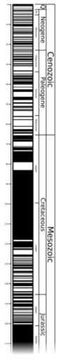 | Keywords: Geomagnetic polarity 0-169 Ma.svg Geomagnetic polarity over the past 169 Ma trailing off into the en Jurassic Quiet Zone Dark areas denote periods of normal polarity light areas denote reverse polarity Image created de novo from lists of periods of normal polarity from the following papers Kent D V ; Gradstein F M 1985 A Cretaceous and Jurassic geochronology Geological Society of America Bulletin 96 1419 doi 10 1130/0016-7606 1985 96<1419 ACAJG>2 0 CO;2 ISSN 0016-7606 Cande S C ; Kent D V 1995 Revised calibration of the geomagnetic polarity timescale for the Late Cretaceous and Cenozoic Journal of Geophysical Research 100 6093 doi 10 1029/94JB03098 16 05 2 September 2010 UTC Anomie š” Facts that were discovered such as the dates of geological events are non-copyrightable in the US; specific presentation of that data such as this image may be subject to copyright Geomagnetic polarity 0-169 Ma PT svg Geomagnetism Geology timelines |