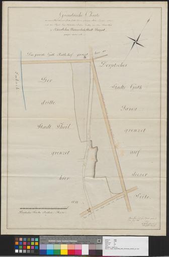 Keywords: Geometrische Charte von einen Theil des zum Stadt Guthe Jama gehörigen Acker Landes, welches nach dem Project Eines Hochedlen Rathes künftig zum 3-tem Stadt Theil der Kaiserlischen Universitaets-Stadt Dorpat gezogen worden soll.jpg en A map from Estonian National Archives with Reference code EAA 298 2 44 Sheet 1 et Kaart Eesti Rahvusarhiivist Lähtekoodiga EAA 298 2 44 leht 1 1813 http //www ra ee/kaardid/index php/et/map/view id 26048 Conrad Martin Sengbusch Information_field de type City plan sheet Single sheet map reproduction Printed Information_field de Geometrische Charte von einen Theil des zum Stadt Guthe Jama gehörigen Acker Landes welches nach dem Project Eines Hochedlen Rathes künftig zum 3-tem Stadt Theil der Kaiserlischen Universitaets-Stadt Dorpat gezogen worden soll scale 1 1500 Information_field EAA 298 2 44 Sheet 1 Information_field cm 76 54 Information_field print paper Custom license marker 2014 09 02 PD-old-100 Uploaded with UploadWizard Images from the Estonian Historical Archives Old maps of Tartu Kreis Dorpat Tartu in the 19th century Conrad Martin Sengbusch |
