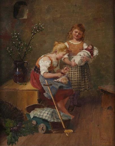 Keywords: Georg Rössler Mädchen spielen mit Puppen.jpg ädchen spielen mit Puppen signiert Rössler München Öl auf Leinwand 51 5 x 41 5 cm http //www doebritz de Auktionshaus Döbritz by 1925 Georg Rössler 1861 “1925 PD-old-auto 1925 Images from Auktionshaus Döbritz Georg Rössler Paintings of girls with dolls Playing children in art |