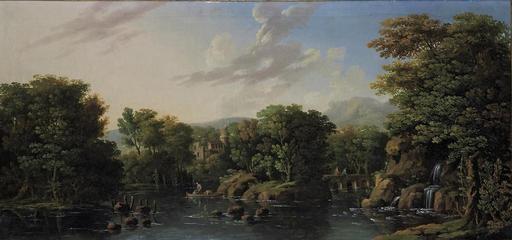 | Keywords: George Barret - A wooded river landscape with fishermen in a boat, a ruined building beyond etc...jpg George Barret Sr George Barret Sr other date ca 1728/32 -1784 oil canvas cm 60 3 125 6 object history Provenance Commissioned by Joseph Leeson 1st Earl of Milltown 1701-1783 for the Saloon at Russborough Co Wicklow Ireland and by descent until acquired by Capt Denis Daly along with the remaining contents of Russborough in 1931; Hamilton Hamilton Russborough 21 October 1952 lots 147-8 <br/> Mr and Mrs Donald Davies Charleville Enniskerry Co Wicklow; Christie's on the presmises 23 January 1978 lot 142 where acquired by the present owner credit line accession number christies online 5391280 PD-Art-100 George Barret Sr 18th-century landscape paintings |