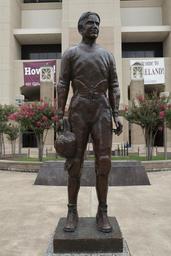 Keywords: George E. "Pat" Foley's statue, "The Twelfth Man," on the Texas A&M University campus in College Station, Texas LCCN2014633927.tif 1 photograph digital tiff file color Notes Title date and keywords based on information provided by the photographer ; A gift of the Class of 1980 this sculpture portrays E King Gill an A M student and football player from the 1920s In 1922 during a post-season game Gill was called from the stands to help the football team which was rapidly losing players due to injuries Although he never entered the game by the time it was over he was the only player standing along the sidelines Since that time Aggies as the fans and players are called have stood at football games to symbolize their support for the team It is felt that the crowd's energy has the effect of supplying an additional player to the 11 men competing on the field ; Forms part of Lyda Hill Texas Collection of Photographs in Carol M Highsmith's America Project in the Carol M Highsmith Archive ; Gift; The Lyda Hill Foundation; 2014; DLC/PP-2014 054 ; Credit line The Lyda Hill Texas Collection of Photographs in Carol M Highsmith's America Project Library of Congress Prints and Photographs Division 2014 Creator Carol M Highsmith Library of Congress Catalog http //lccn loc gov/2014633927 Image download https //cdn loc gov/master/pnp/highsm/29700/29727a tif Original url http //hdl loc gov/loc pnp/highsm 29727 No known restrictions on publication LOC-image highsm 29727 PD-Highsmith Images uploaded by Fæ Lyda Hill Texas Collection of Photographs in Carol M Highsmith's America Project in the Carol M Highsmith Archive The Lyda Hill Texas Collection of Photographs in Carol M Highsmith's America Project Library of Congress Prints and Photographs Division Photographs by Carol M Highsmith |