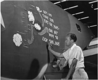 Keywords: George ("Randy") McCraw, decorating a Vega Ventura bomber. Every ship that rolls off the line carries a cartoon aimed... - NARA - 196380.jpg Scope and content General notes 196380 Local identifier Roosevelt Franklin D Franklin Delano 1882-1945 Franklin D Roosevelt Library NLFDR 4079 Albany Post Road Hyde Park NY 12538-1999 ca 05/1942 Record group Collection FDR-PHOCO Franklin D Roosevelt Library Public Domain Photographs 1882 - 1962 Record group ARC 1184 Franklin D Roosevelt Library Public Domain Photographs compiled 1882 - 1962 Series ARC 195301 File unit File unit ARC Variant control numbers NAIL Control Number NLR-PHOCO-A-66120 12 Other versions <gallery> File George_ Randy _McCraw _decorating_a_Vega_Ventura_bomber _Every_ship_that_rolls_off_the_line_carries_a_cartoon_aimed _-_NARA_-_196380 tif tif File George_ Randy _McCraw _decorating_a_Vega_Ventura_bomber _Every_ship_that_rolls_off_the_line_carries_a_cartoon_aimed _-_NARA_-_196380 jpg jpg </gallery> NARA-cooperation PD-USGov Nose art on Lockheed PV-1 Ventura Aircraft nose art PV-1 |