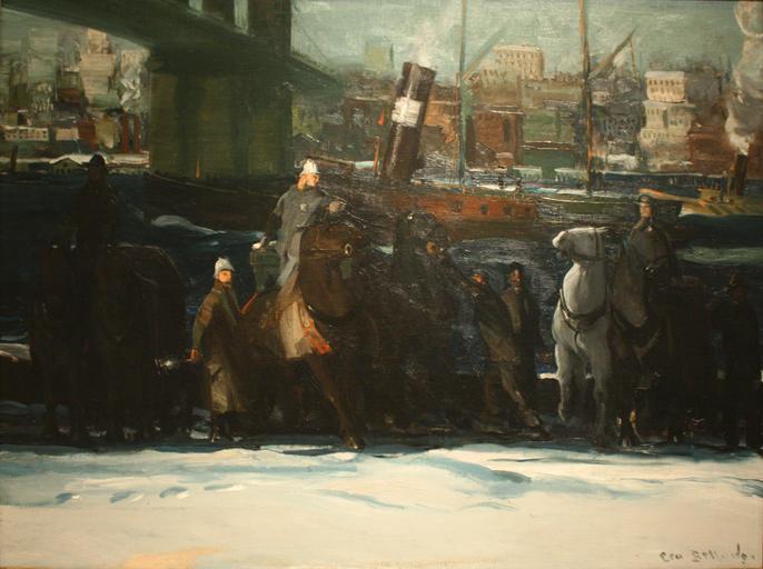 | Keywords: George Wesley Bellows - Snow Dumpers (1911).jpg Artwork creator George Wesley Bellows Depicts work crews dumping shoveled snow from horse-drawn wagons into the East River near the base of the Brooklyn Bridge 1911 Oil canvas 36 125 48 125 Columbus Museum of Art accession number 1941 001 object history credit line Museum Purchase Howald Fund Geo Bellows ~ lower right signature http //www hvallison com/WorkDetail aspx w 317 George Bellows ™ Catalogue RaisonnĂ© Record Book A pp127 Columbus Museum of Art 1988 The American Collections p 214 Digital photo by User Postdlf PD-old-auto-1923 1925 DEFAULTSORT Bellows George Snow Dumpers 1911 Paintings by George Wesley Bellows Paintings in the Columbus Museum of Art Snow in Manhattan New York City 1911 in New York City Paintings of New York City Paintings of the Brooklyn Bridge 1911 paintings Paintings in the Columbus Museum of Art Photos by Postdlf Snow removal in the United States Paintings of people with snow |