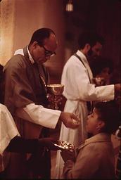 Keywords: GeorgeHClements1973.jpg Rev George H Clements giving Holy Communion Chicago 1973 Original caption Holy Angel catholic church on Chicago's South side 1973 Photograph by John H White for Series DOCUMERICA The Environmental Protection Agency's Program to Photographically Document Subjects of Environmental Concern compiled 1972 - 1977 NARA-image 556236 Converted from gif to jpg and border cropped before upload 1973-10 John H White Unrestricted PD-USGov 1973 in Chicago Clergy from the United States Clements Churches in Chicago Eucharist African American clergy and religious figures Clements John H White DOCUMERICA Holy Angels churches in the United States Communion |