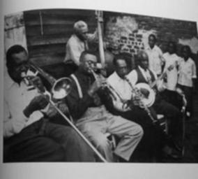 Keywords: GeorgeLewisBandKubrick.jpg Jim Robinson trombone; Alcide Slow Drag Pavageau string bass; Elmer Talbert trumpet; George Lewis clarinet; Lawrence Marrero banjo Photograph by Stanley Kubrick published in Look Magazine 6 June 1950 Via scan at http //jazz classique free fr/page11/files/6d007a45f53f6e9fc593f39e10137f7f-7 html Note Higher quality scan would be welcome 1950 Stanley Kubrick Credit Line Stanley Kubrick photographer LOOK Magazine Collection Library of Congress Prints Photographs Division Reproduction number e g LC-L9-60-8812 frame 8 PD-Look http //www loc gov/rr/print/res/378_kubr html Hand-held camera copying is not permitted; all other forms of copying are permitted subject to P P policy on copying ImageNote 1 2 49 67 83 227 205 2 Jim Robinson ImageNoteEnd 1 ImageNote 2 72 9 53 49 227 205 2 Alcide Pavageau ImageNoteEnd 2 ImageNote 3 80 58 43 54 227 205 2 Elmer Talbert ImageNoteEnd 3 ImageNote 4 125 59 27 39 227 205 2 George Lewis ImageNoteEnd 4 ImageNote 5 153 56 24 32 227 205 2 Lawrence Marrero ImageNoteEnd 5 George Lewis clarinetist Elmer Talbert Jazz ensembles Stanley Kubrick Music in 1950 1950 in New Orleans Men at work in New Orleans |