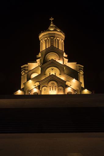 Keywords: georgia tbilisi cathedral trinity church night illuminated tsminda sameba orthodox architecture
