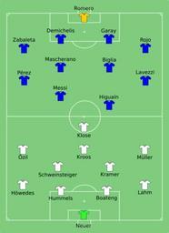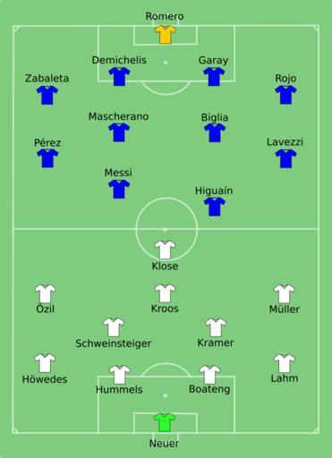 | Keywords: GER-ARG 2014-07-13.svg  2014 FIFA World Cup Final match between Germany and Argentina 2014-07-13 23 06 19 own <br />Line-ups http //resources fifa com/mm/document/tournament/competition/02/40/47/25/eng_64_0713_ger-arg_tacticalstartlist_neutral pdf Davykamanzi cc-zero Uploaded with UploadWizard FIFA World Cup 2014 line-ups |